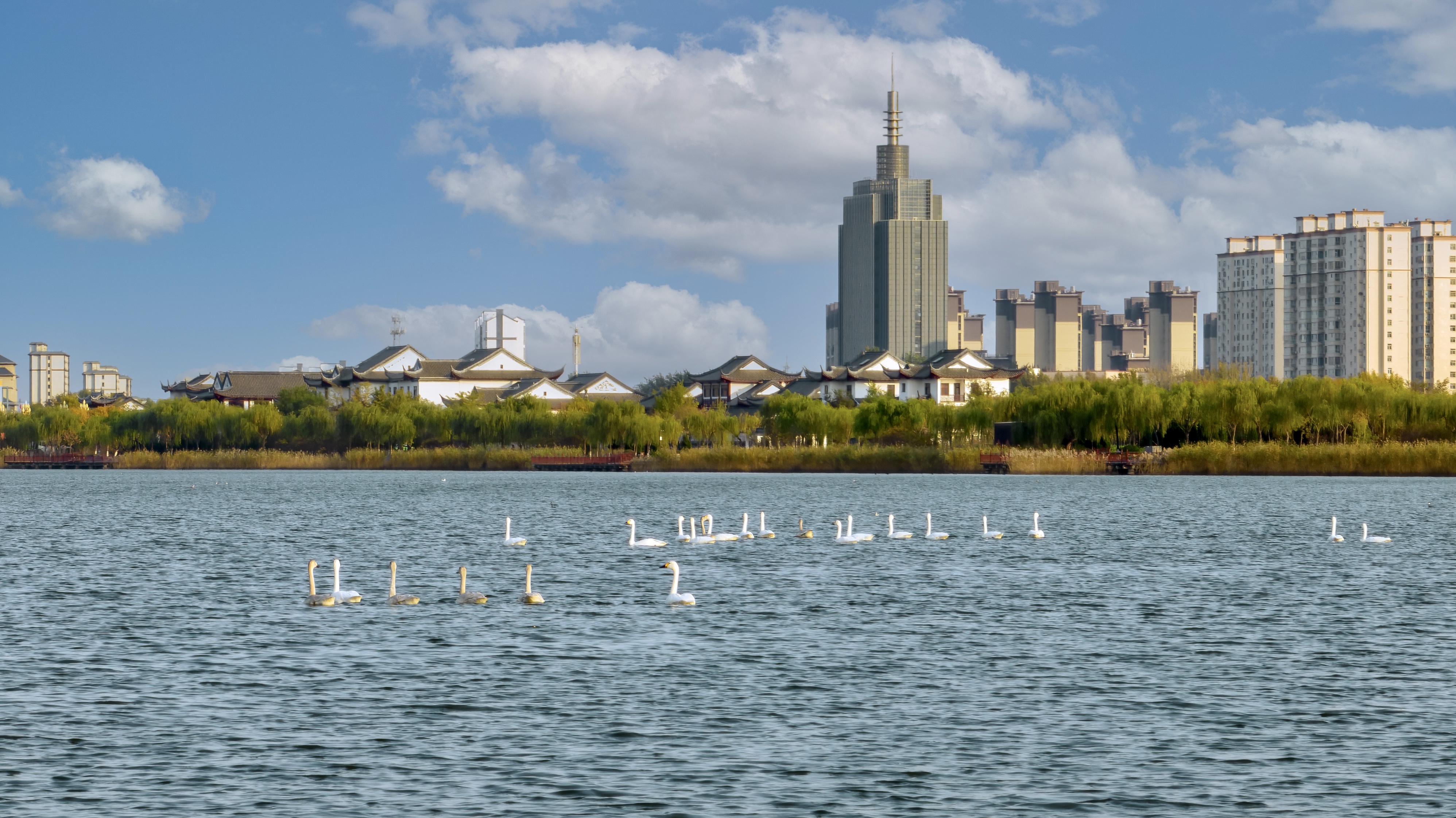 采访的过程中,记者还偶遇了自北京来我市工作的王龙陵,爱好摄影的他一来到衡水湖就喜欢上了这里,他称赞衡水湖“天蓝水绿、鸟多景美”。“因为工作的关系,我经常外出,也算是见识过全国各地的湿地美景了,但一来这儿(衡水湖)还感到震惊,水域面积大、鸟类品种、数量多,生态保护也特别好。”说到这儿,王龙陵竖起了大拇指,“前两天,我还在这儿拍摄到了一只全身金黄、带花纹的夜鹭,特别美。”王龙陵说,这让他感觉格外惊喜,不住地笑言“不虚此行”。