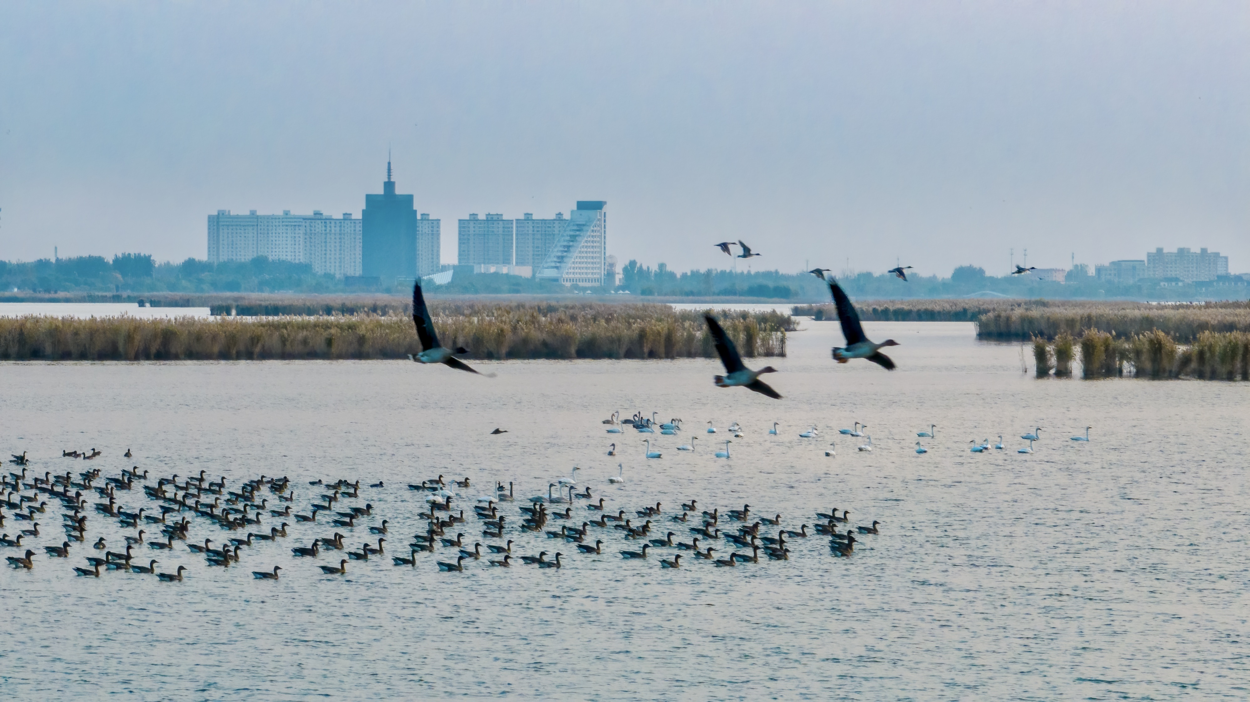 “环境好不好,鸟儿最知道,它们就像是生态环境的风向标,哪里生态好,它们就飞向哪里、栖息在哪里。”我市摄影爱好者张学锋四年来一直在衡水湖畔拍摄,他的镜头不仅记录下鸟儿们的生存繁衍,记录下大自然的生生不息,更记录下几年来衡水湖的生态变化。“品类越来越多,数量也越来越多。尤其是这几天,大量的鸿雁、豆雁迁徙而来,这时候拿起长焦镜头,捕捉它们的各种情态,大概是初冬最富生趣的事情。”生态变好、环境变美,张学锋说,他拍摄出来的照片也更加漂亮了。