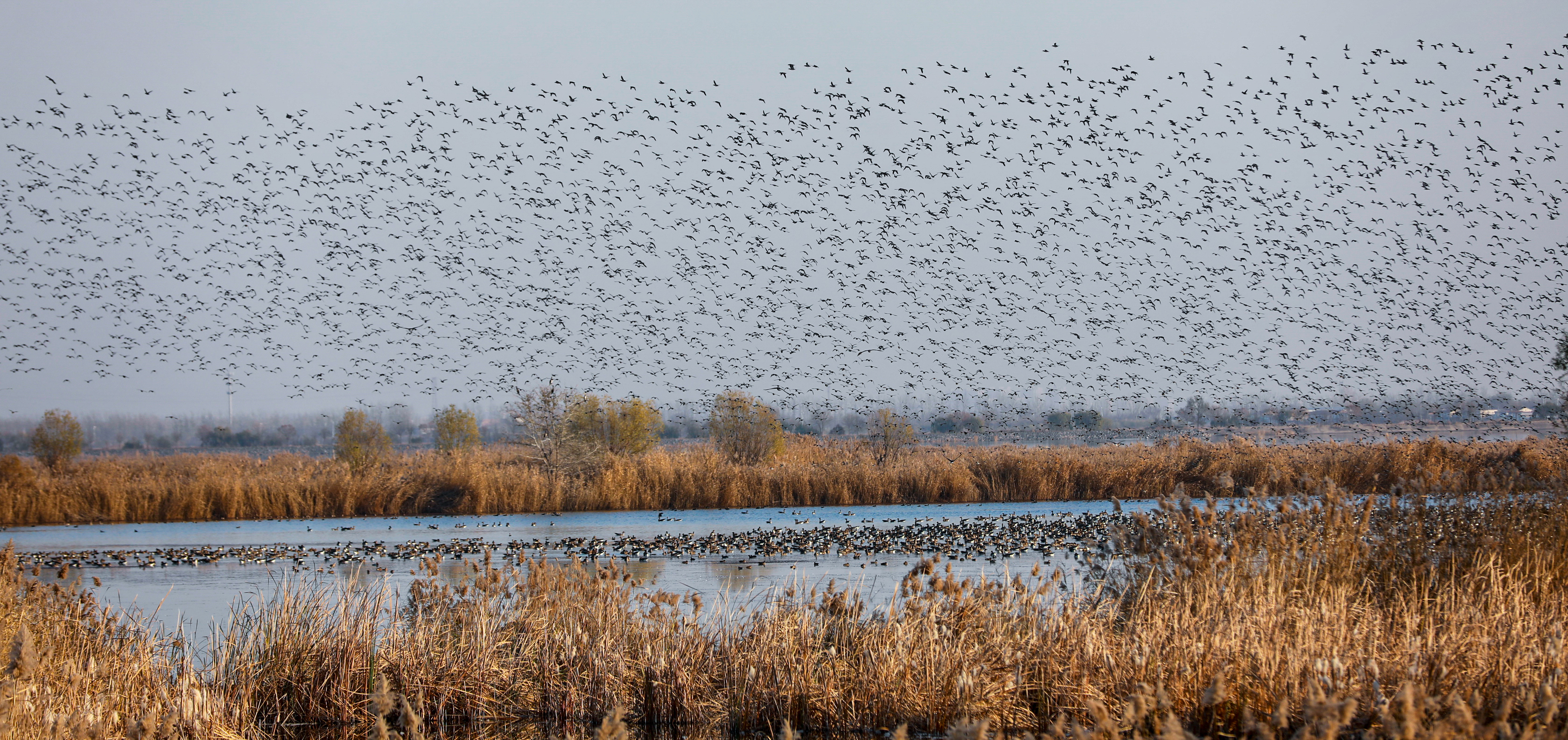 又到一年观鸟季,景美鸟美生态美。近日,衡水湖越冬的鸟逐渐增多,它们在水面盘旋飞舞、打闹嬉戏……美丽的倩影与初冬的靓丽景致相映成趣,引得大批摄影爱好者前来观赏留念,定格最美衡水湖生态美景。
