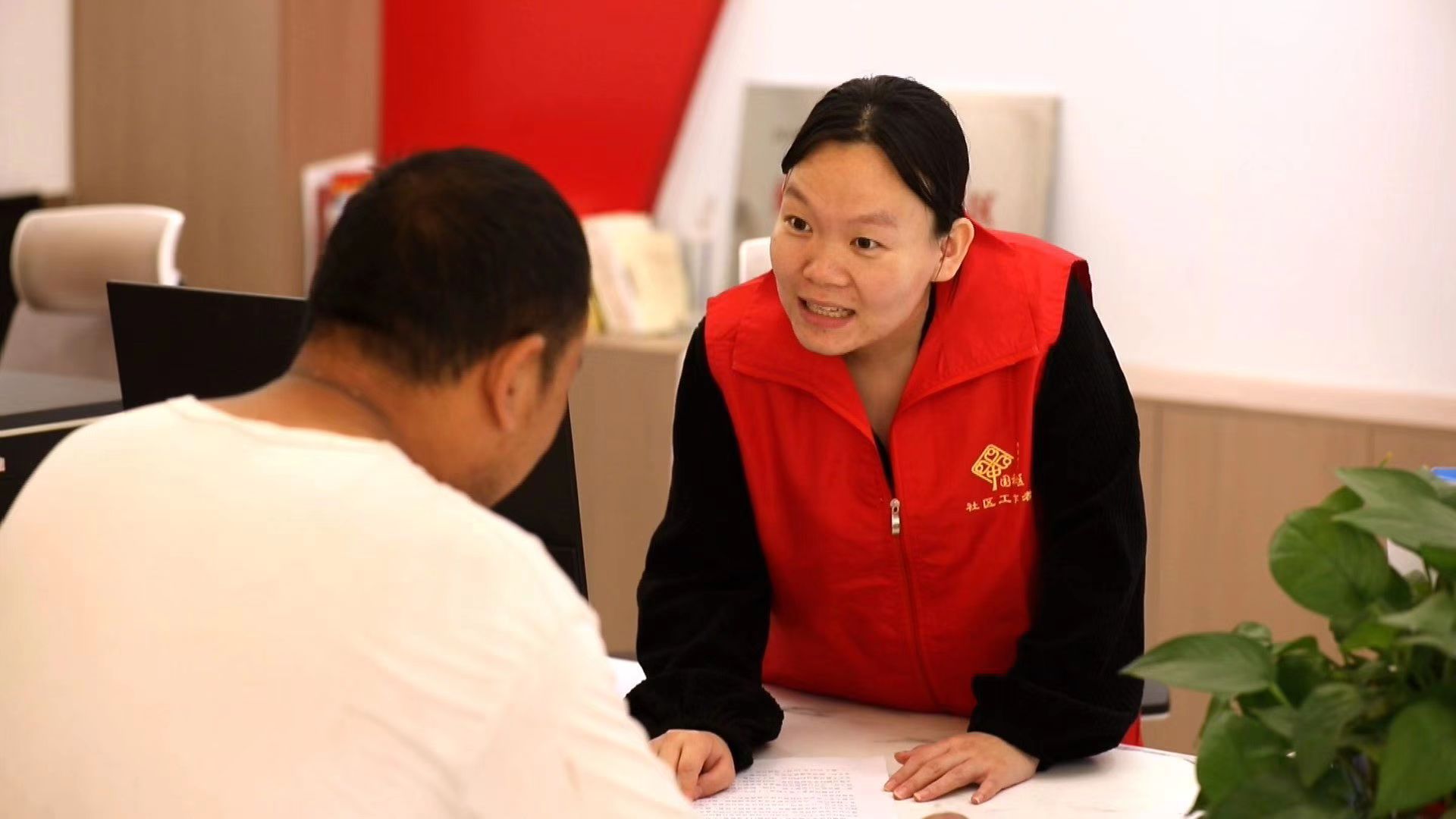 “零工超市”工作人员接待求职者。
