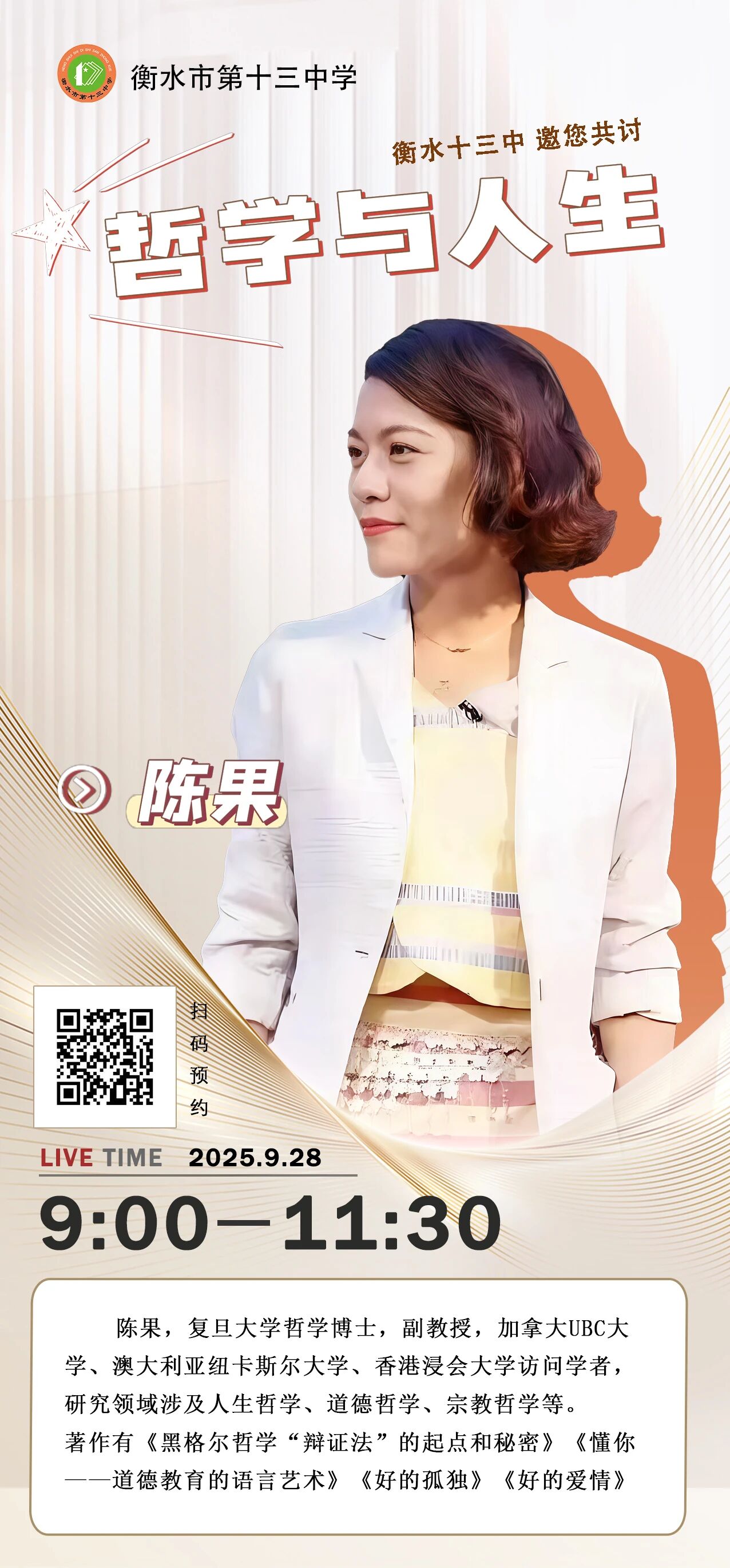 【预约开启】复旦大学陈果教授9月28日衡水十三中专场讲座