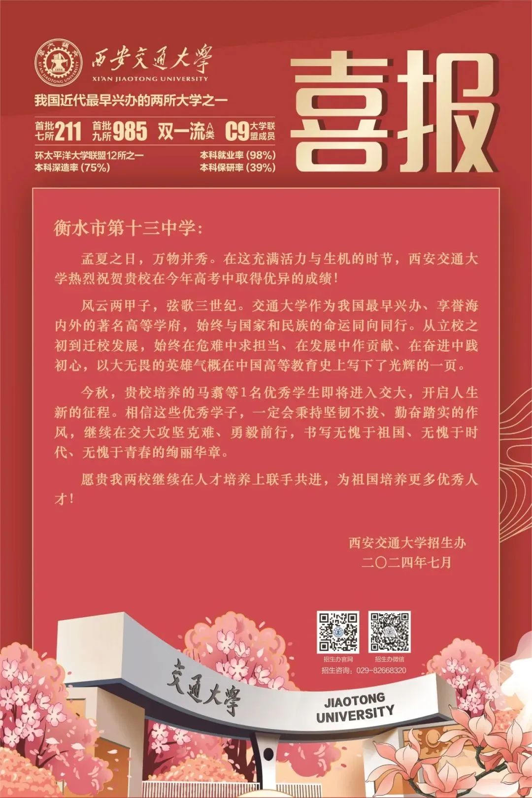 高考倒计时100天 西安交大期待与衡水十三中学子的无限可能