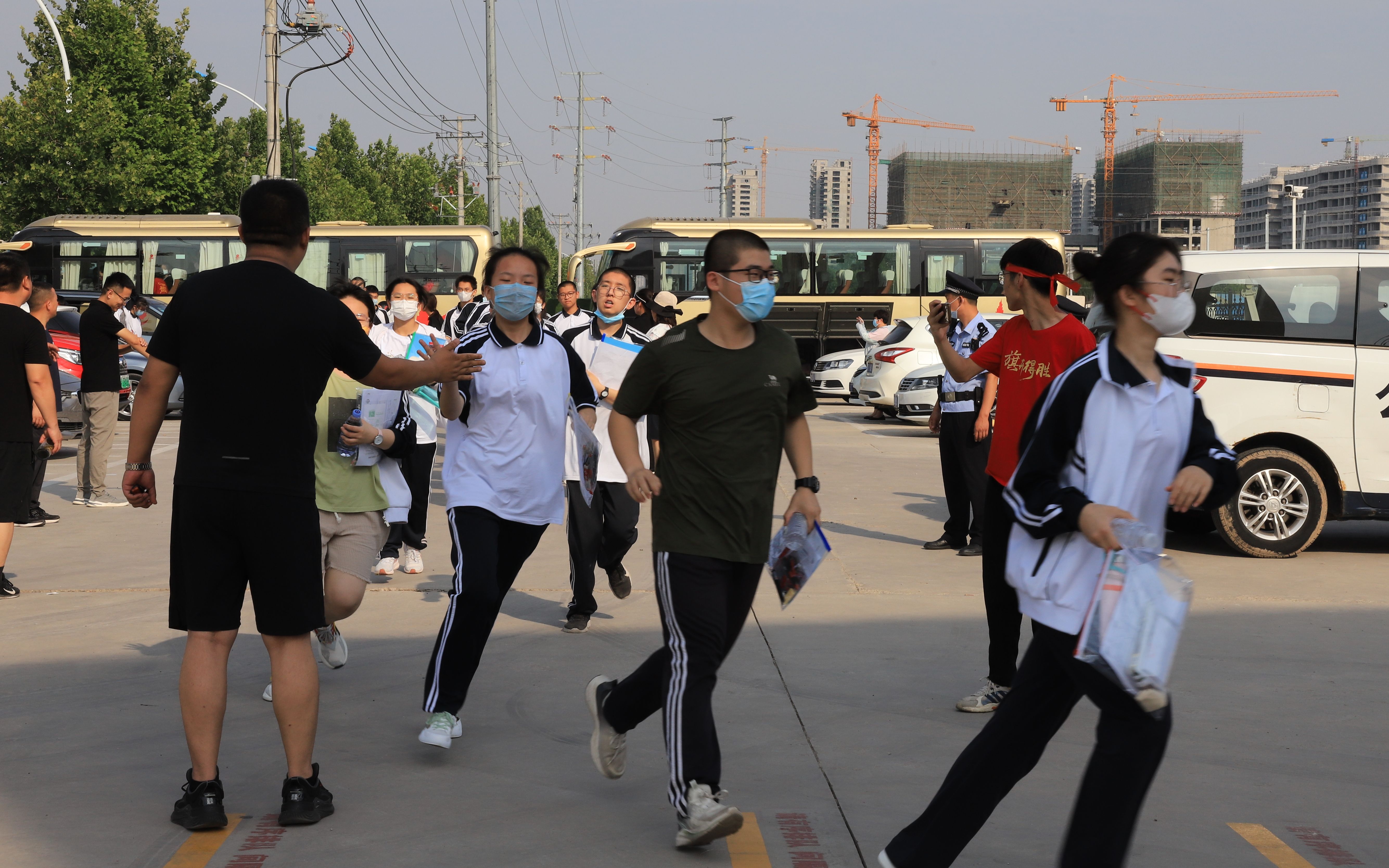 中考第一天 衡水考场外“荧光黄”护考忙