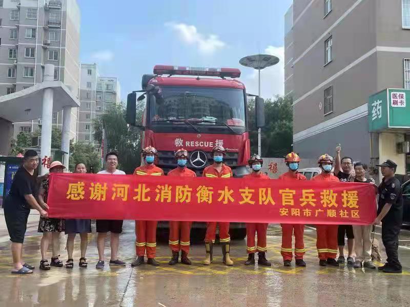 衡水消防尽心排涝解民忧 安阳老乡送条幅致谢