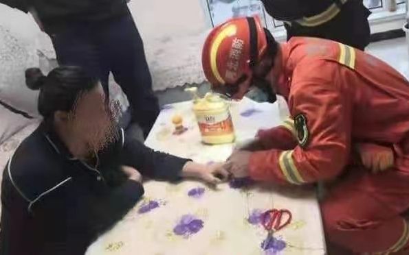 衡水高新区一孕妇戒指卡手 消防急速救援