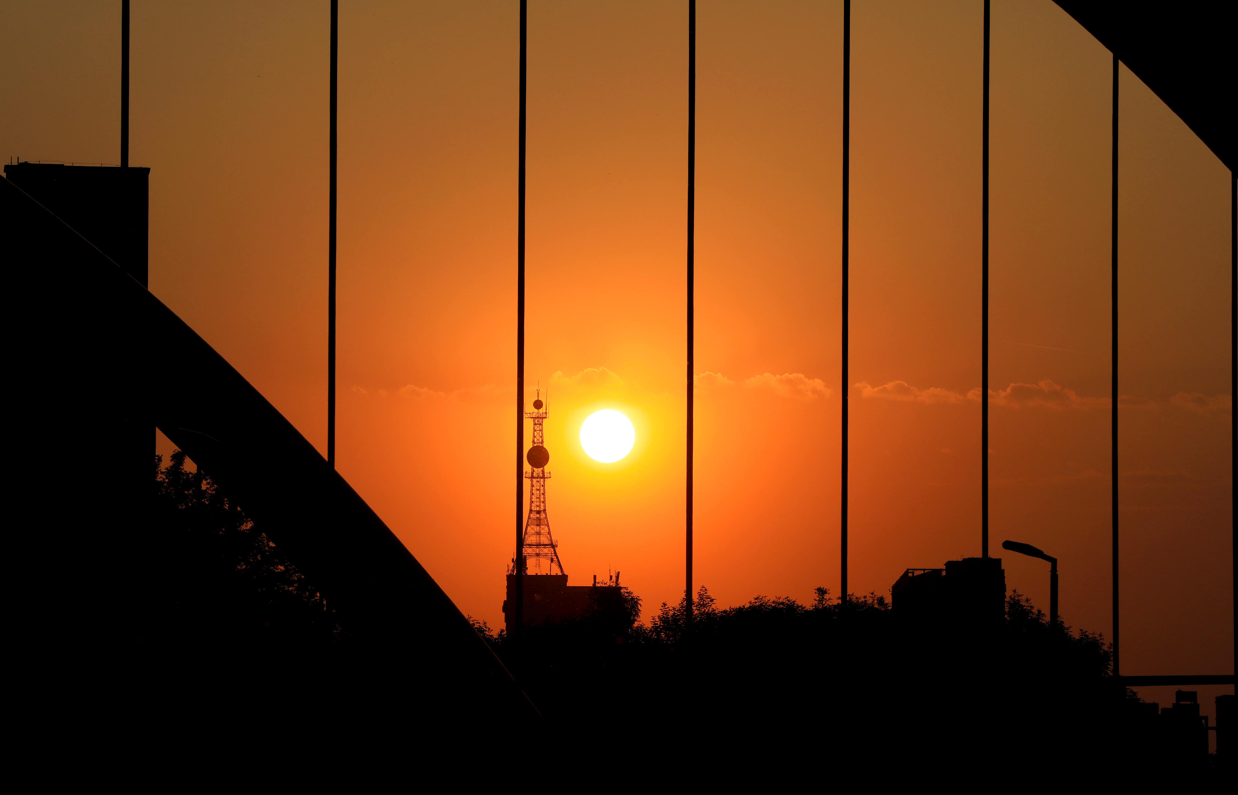 河北衡水: 落日余晖映晚霞