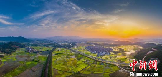 绝美夕照!航拍江西峡江生态宜居乡村美景
