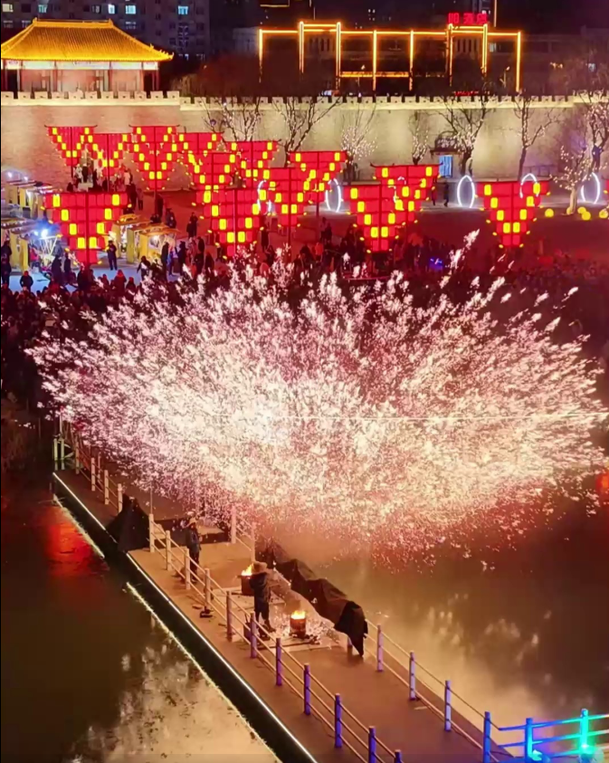 冀州市集打铁花 星火漫天映夜空