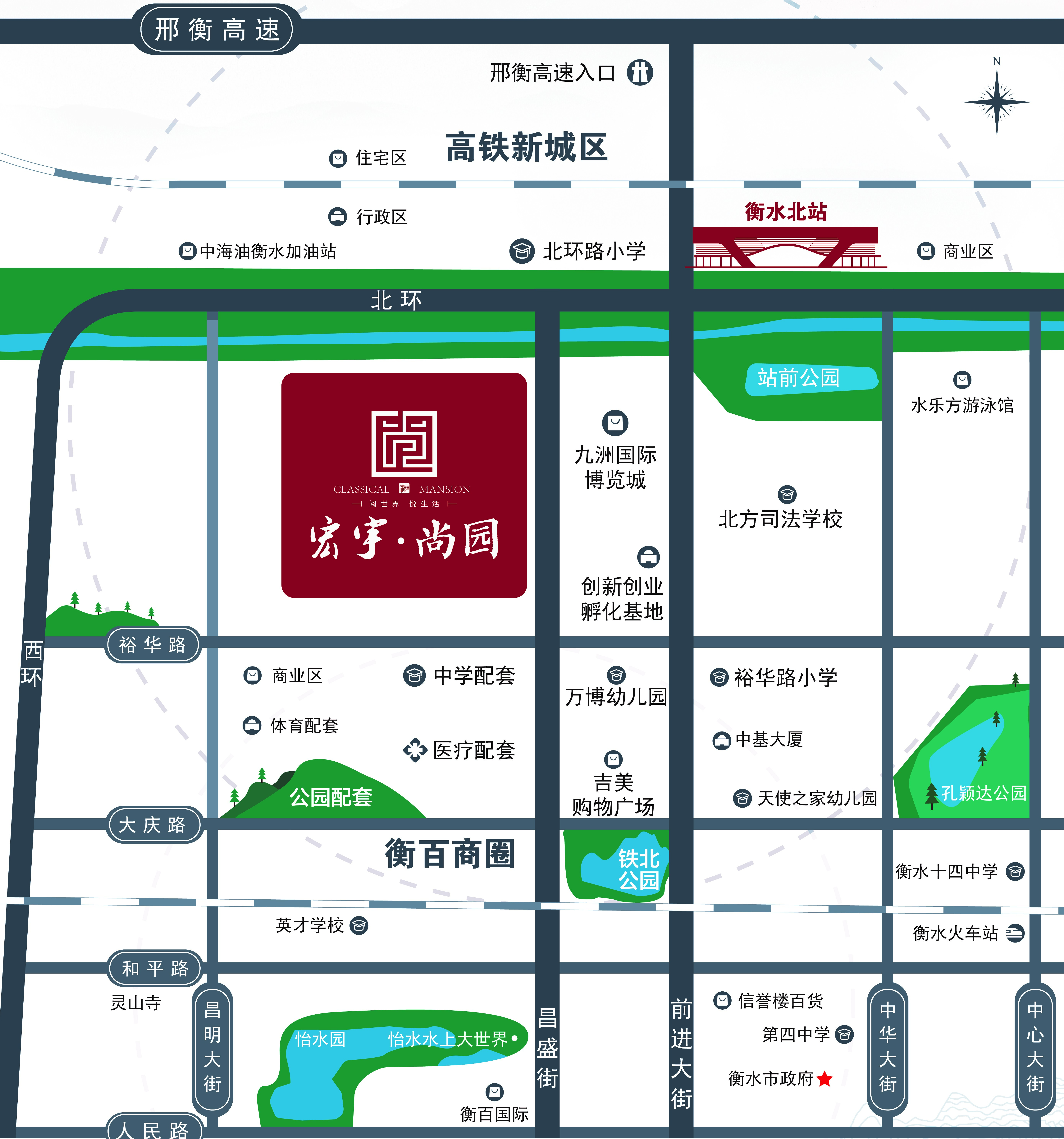 项目距衡水北站仅5分钟车程,距衡水汽车总站及衡水火车站仅10分钟车程,距高速口也仅5分钟车程,并且项目门口有公交车全天运营,为业主出行保驾护航。项目周边配套齐全,紧邻九州国际博览城,3公里以内辐射吉美超市、信誉楼商场。