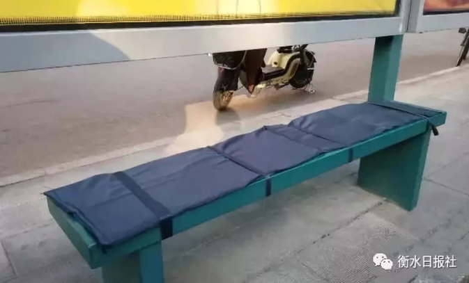 10月26日,衡水八零九零帮拓者协会、衡水学院和汇丰源集团的50余名志愿者,为市区公交候车亭和部分公园的长凳安装了300余个爱心坐垫。