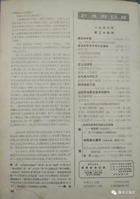 许志亮说,那时他们还很年轻。“我爸25岁,靳之林在中央美院,不到30岁。”《新观察》是一本面向知识界的综合性期刊,被一些外国读者称为“中国美术的一个窗口”,1950年7月在北京创刊,初期先后由人民出版社、人民日报社出版,1954年成为中国作家协会机关刊物。现已停刊。