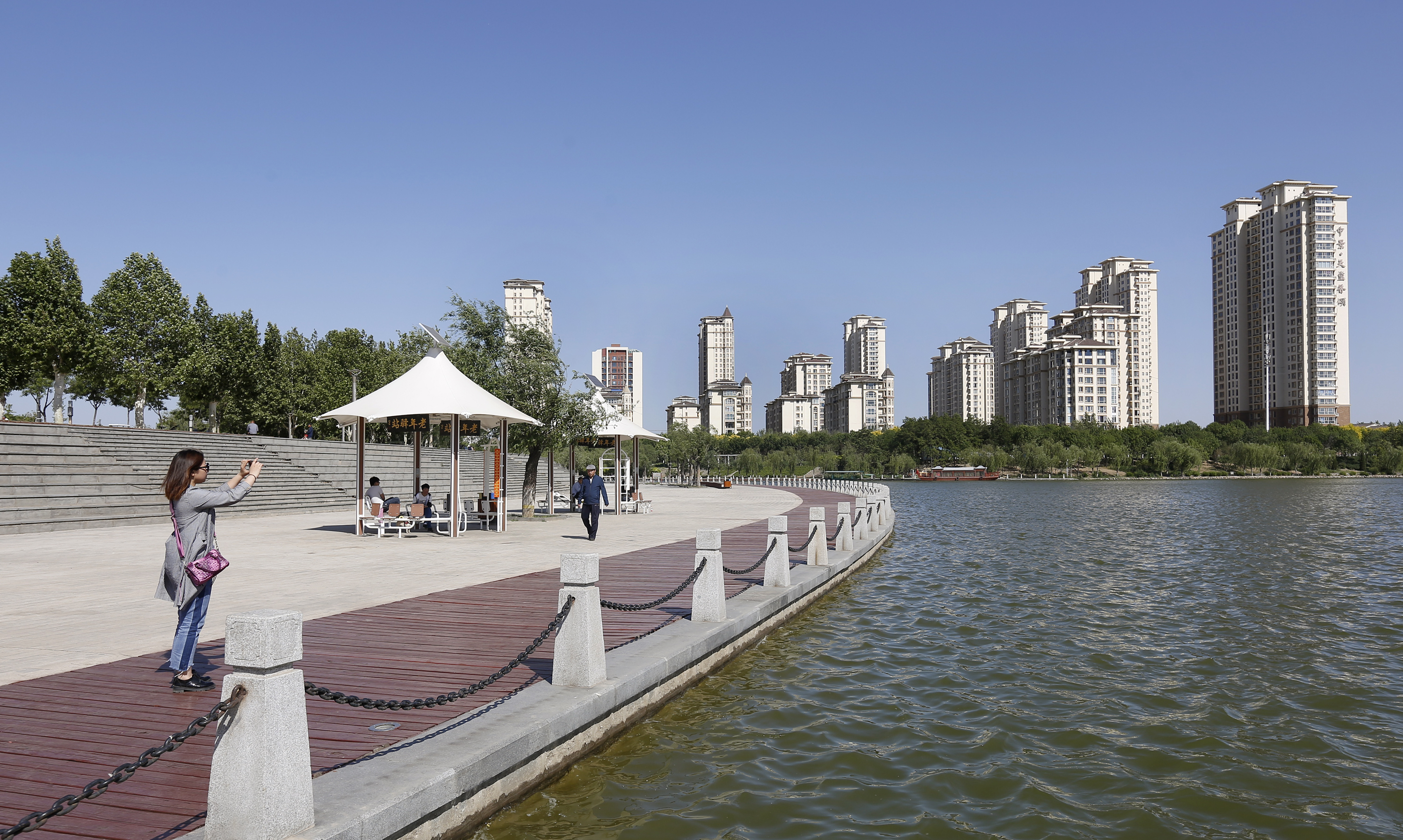 近年来,我市以“美化、亮化、绿化”为主要内容的城市建设成效显著,在治理地下水超采的同时,实施了水污染防治行动计划,通过加快污水处理设施和能力建设,实行河湖长制全覆盖等举措,建立了“市级统筹、部门协调、整体推进”的治水新局面,扮靓了城市的市容市貌,提升了城市品位和百姓生活品质。图为衡水市滏阳河段一景。