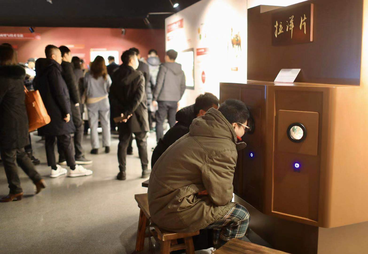 观众观看“拉洋片”,了解瓷器制作工艺流程。