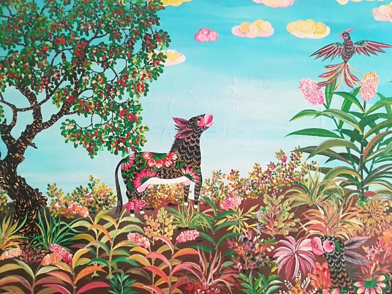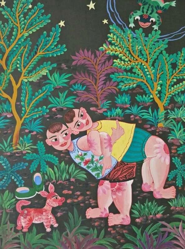 晚上,张洪信经常在油灯下给儿女画小猫、小狗、小鸟、大树、花草,哄他们玩。