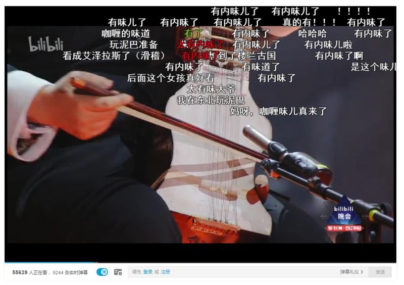 作为B站的精华,弹幕理所当然地出现在B站晚会上。小时姑娘看了晚会的弹幕,她唱《爱殇》时,飙高音前弹幕齐刷刷地飘出红字“前方核能”;她印象最深的弹幕是说穿着汉服斗篷的她是“当天晚会上最保暖的一位up主”。