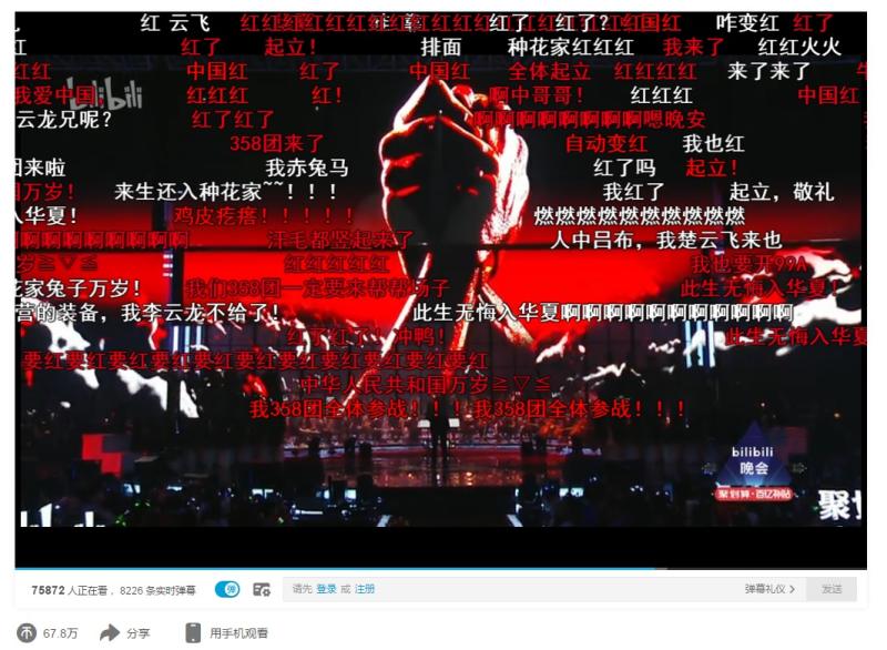 这些稀奇古怪的弹幕,是B站内容构成的重要部分,B站晚会也不例外。在沈维看来,每一个观看B站晚会发送弹幕的人都不仅仅是观众、用户,而是创作者。陆二胡当然也看了B站晚会的弹幕:“印象最深的果然还是那句‘哔哩哔哩干杯!’每个B站的人都知道,无论什么活动这条弹幕都会刷,也永远都是让我最感动的!”