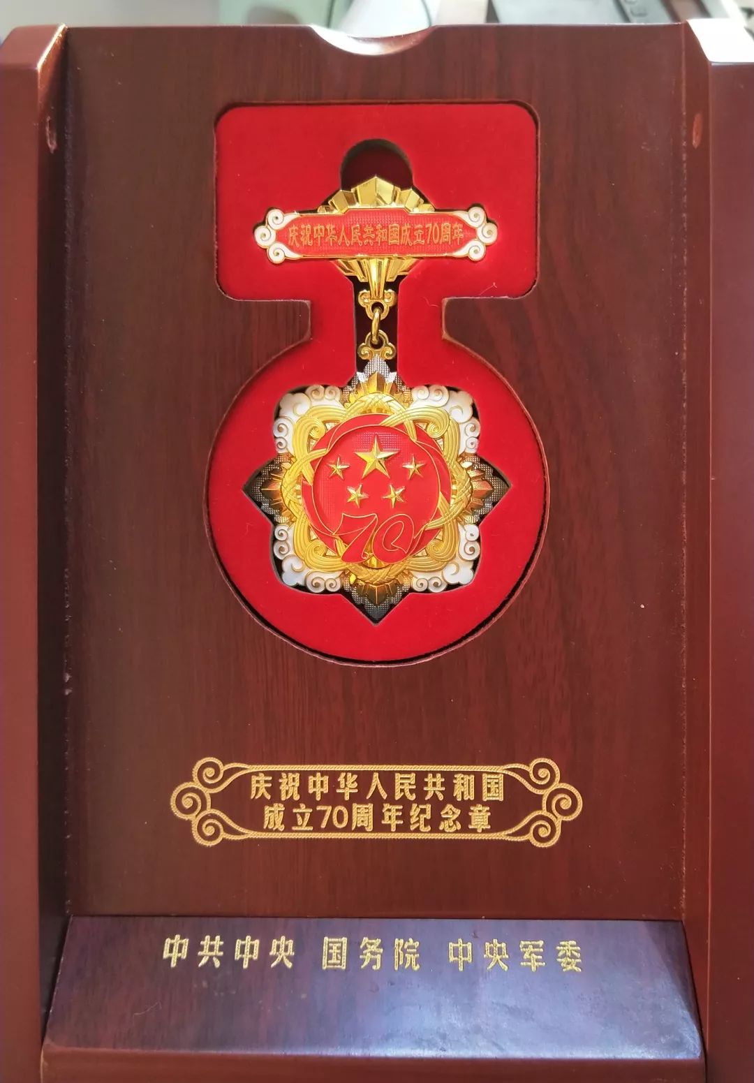 刘保军获颁70周年纪念章。(资料图片)