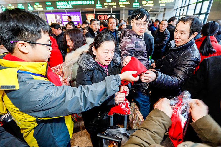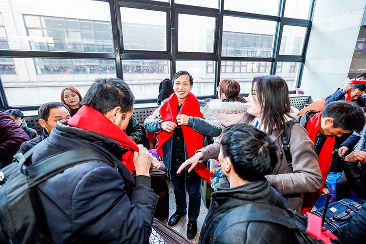 1月8日上午9时38分,北京西开往成都东的G307次“凯翼号”爱心专列准时出发,800余名川籍务工人员佩戴红围巾、手提春联和窗花等礼物,乘坐该趟列车回家过年。