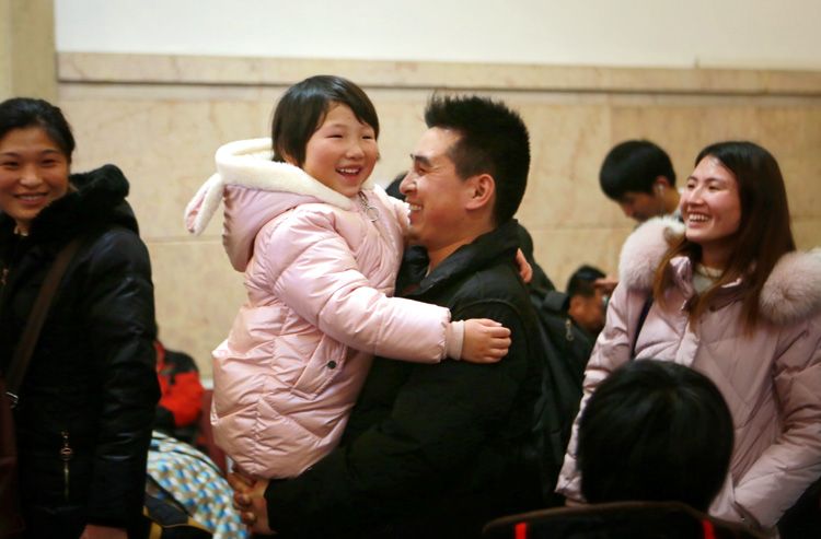 1月9日深夜,北京站候车室,小女孩趴在爸爸的怀里,准备登上回家的旅程。