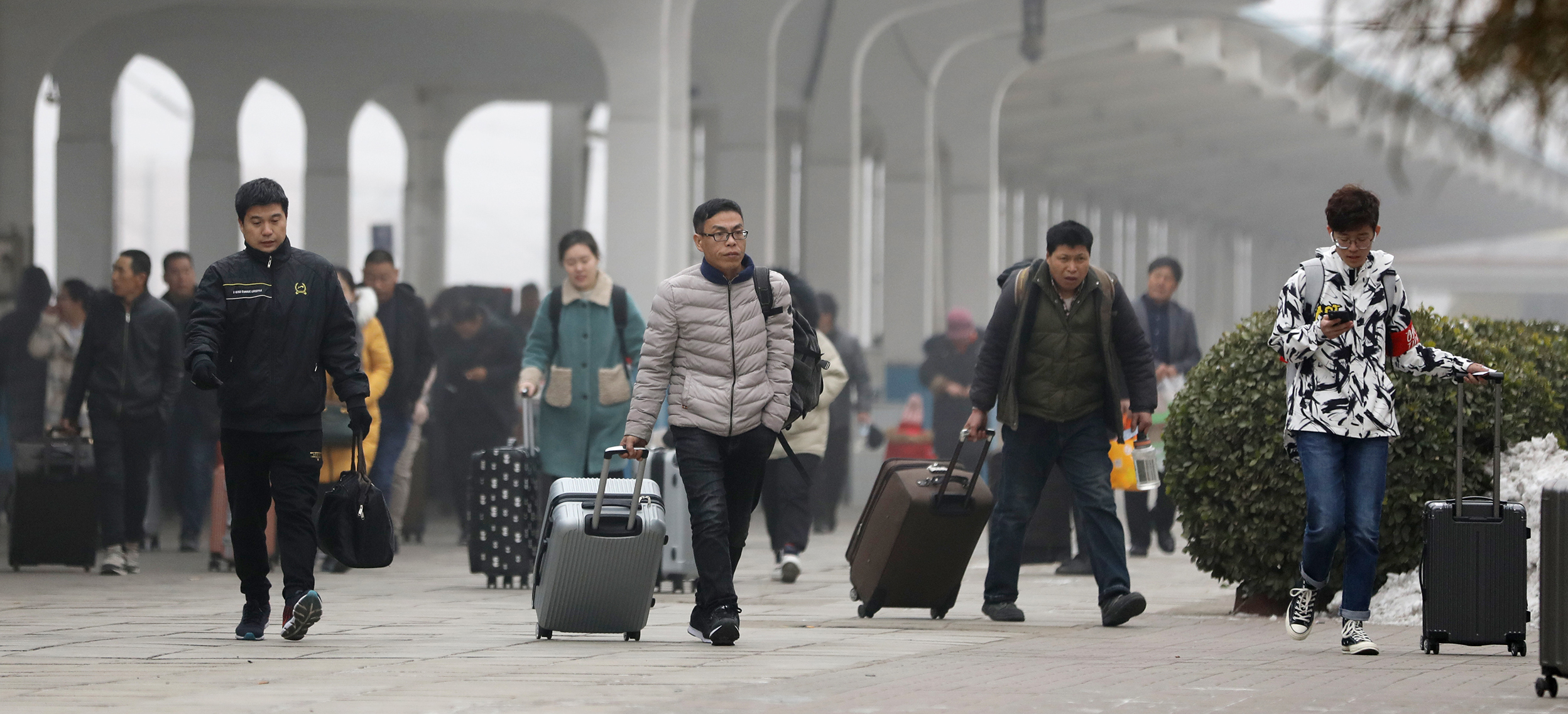 1月10日,返乡旅客在衡水火车站排队出站。