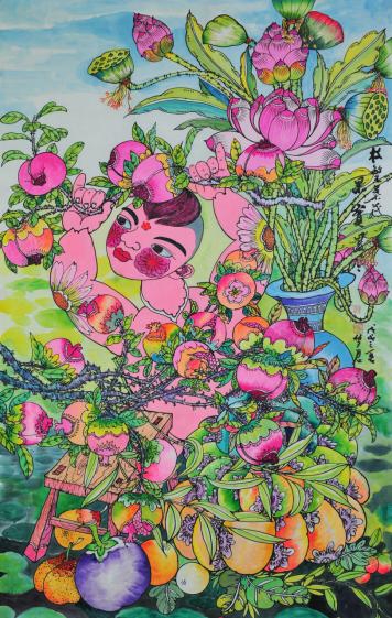 她的伙伴俊娥,用小拳头锤打着她的肩膀说:“你怎么一夜之间就学会画画了。”她也用小拳头锤了俊娥一下肩膀,算是另一种回答。