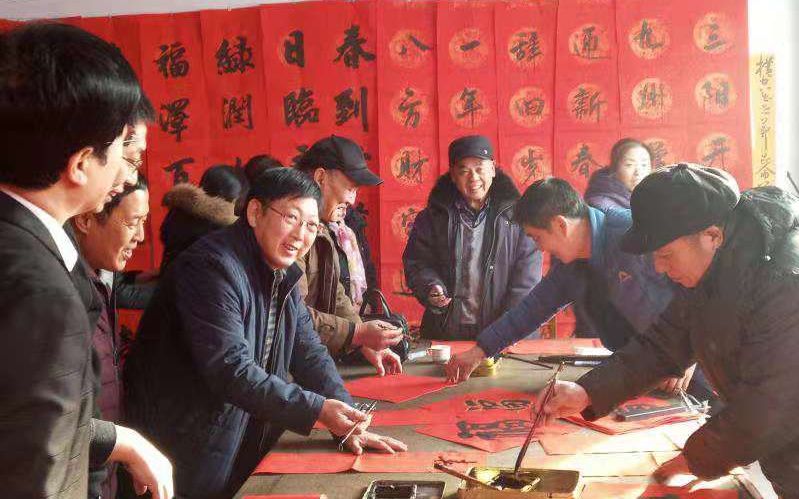 在迎瑞社区开展的迎新春剪纸艺术进社区活动,吸引了不少的居民前来参加。在大家的热情创作下,一幅幅喜庆生动的剪纸作品,一张张开心的笑容,组成了温馨和谐的画面。在故城县龙海园社区,洲海群艺社的书法爱好者,带着真诚的祝福,把一幅幅散发着清新墨香的喜庆春联化作美好祝愿,为社区的居民们送去了充满年味的第一道文化大餐。