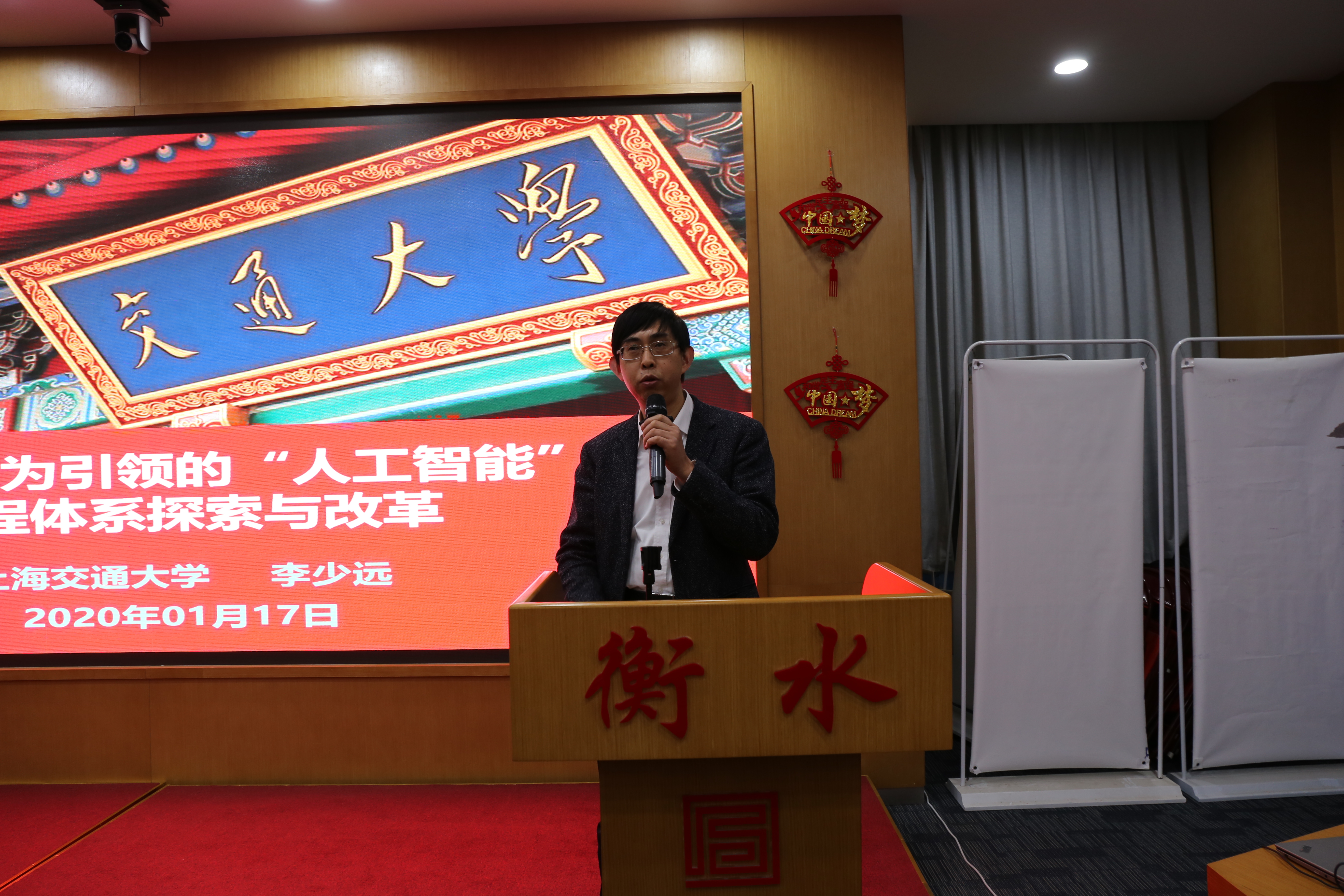 中国自动化学会副理事长、上海交大-巴黎高科卓越工程师学院中方院长李少远研究方向为网络化分布式系统的自适应预测控制、满意优化控制和生产全过程系统的优化控制,2017年获得上海市教学成果特等奖(第一完成人),2018年国家级教学成果一等奖(第一完成人)。他立足以新工科建设的新要求,对“人工智能”专业课程体系改革等方面做了报告。