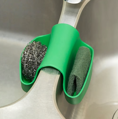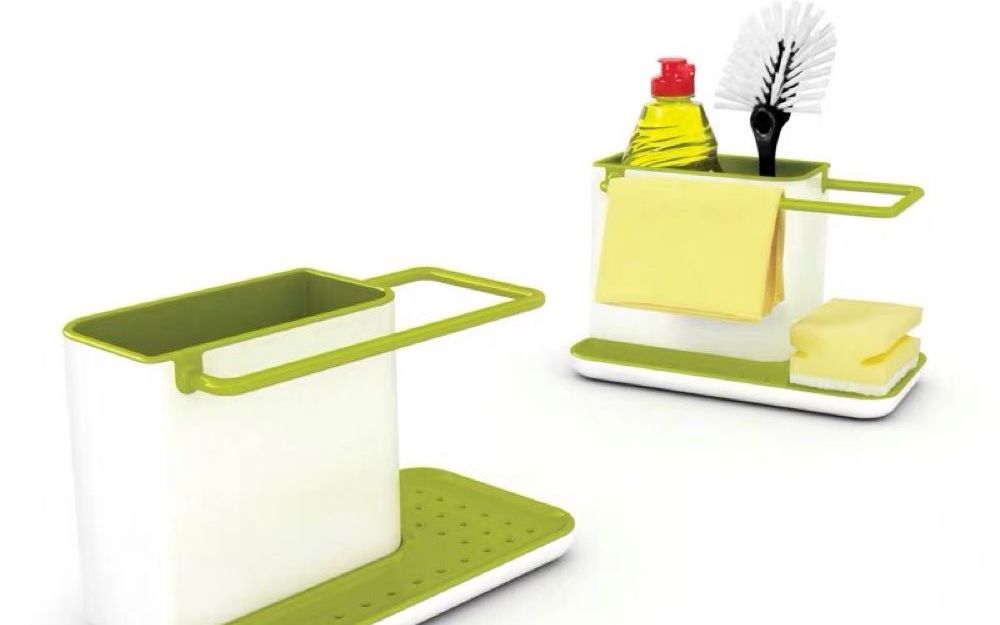 清洗餐盘、锅具的海绵块你是不是随手放在操作台台面上?这样不仅不卫生,还会影响台面整洁度。其实只需把海绵收纳架挂在两个水槽之间的隔断上,就能节省操作台的空间,使用时也十分方便快捷。同时,多余的水还能从底部的洞直接流向水槽。