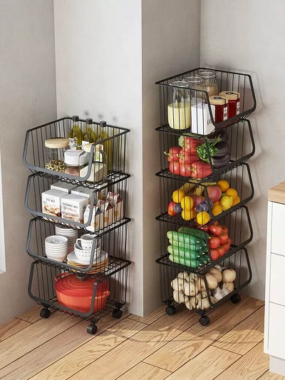 春节期间,家中囤积了各类水果蔬菜,当冰箱放不下时,通常它们被归置在厨房中,要么放地上,要么放台面上,使得厨房空间杂乱无章,而一个置物架便可以轻松解决这个困扰。多层的设计可以收纳多种蔬菜、水果,当然,你也可以用来放碗碟。同时,还可以自由拆分,根据需求决定层数。在厨房夹缝中就可以摆放,节省空间位置。