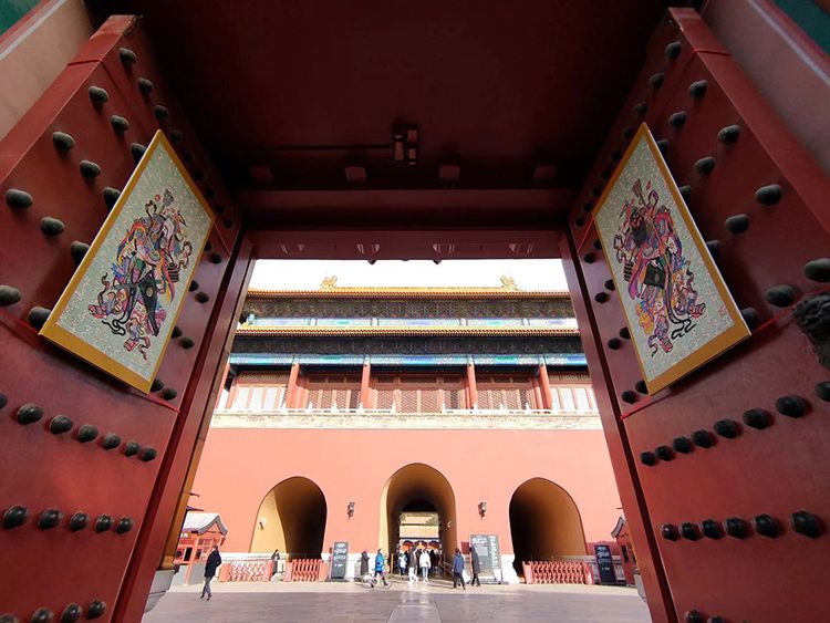 乾清门挂上武门神。