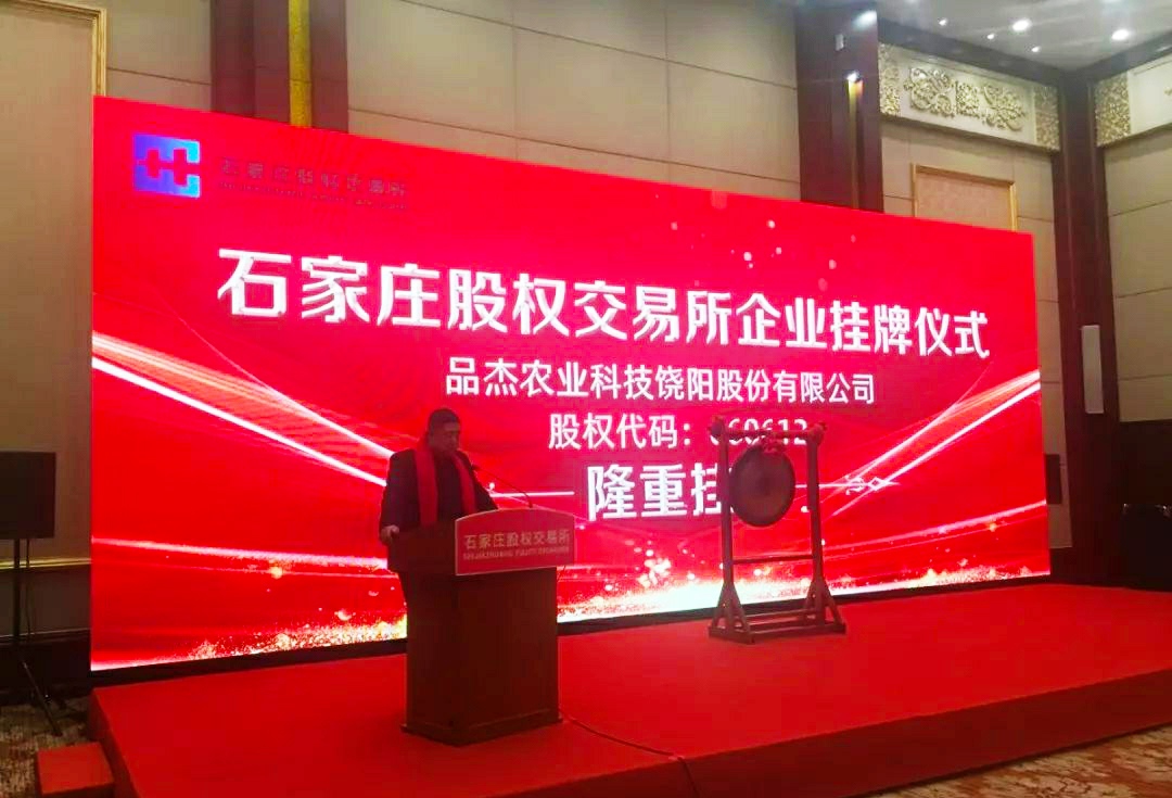 近日,石家庄股权交易所在河北太行国宾馆举行集中挂牌仪式,衡水市河北冀枣运输机械股份有限公司、品杰农业科技饶阳股份有限公司、衡水丽华润康生态科技股份有限公司和河北聚美康科技股份有限公司四家企业在石家庄股权交易所成功挂牌。