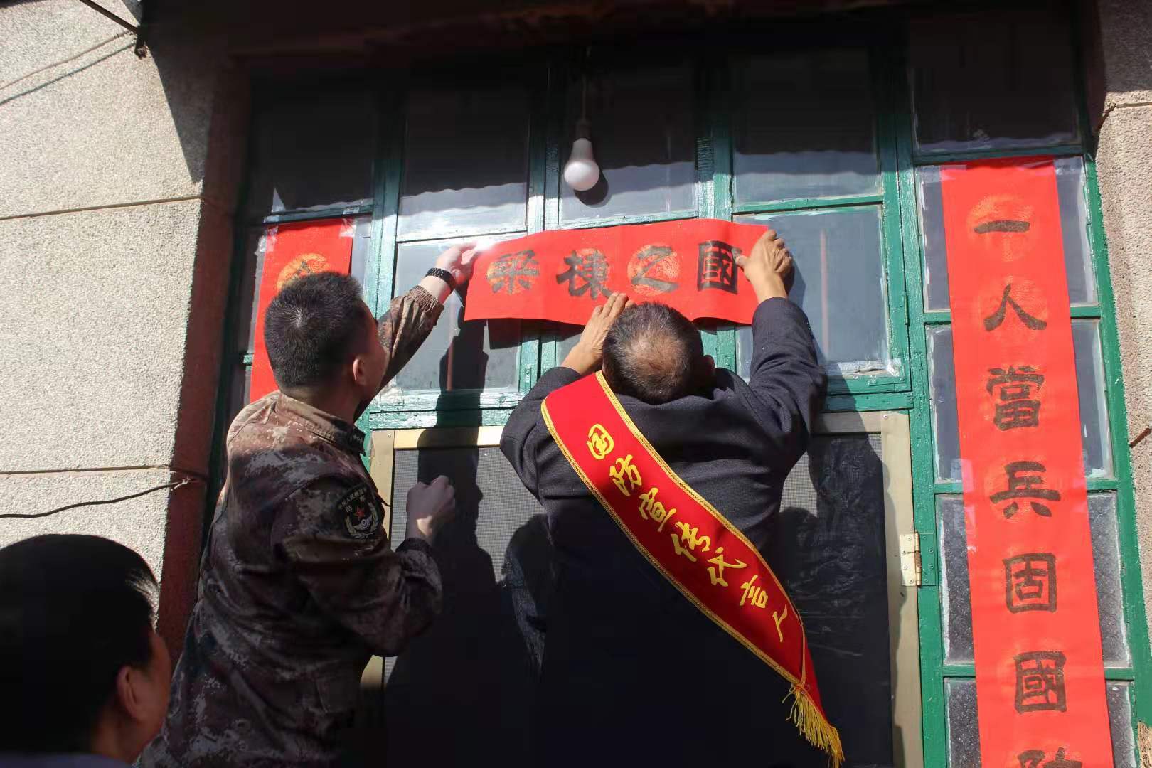 “孩子能参军,是我们的光荣,我们希望他在部队好好干,报销国家,为家乡争光。”1月22日,安平县人武部官兵为南张沃村新兵杜思尧家送来对联和福字,杜思尧的爷爷十分感动。春节前,该县开展了“迎春对联送军属”活动,慰问了全县60名新兵家庭,为他们送上了新春祝福。