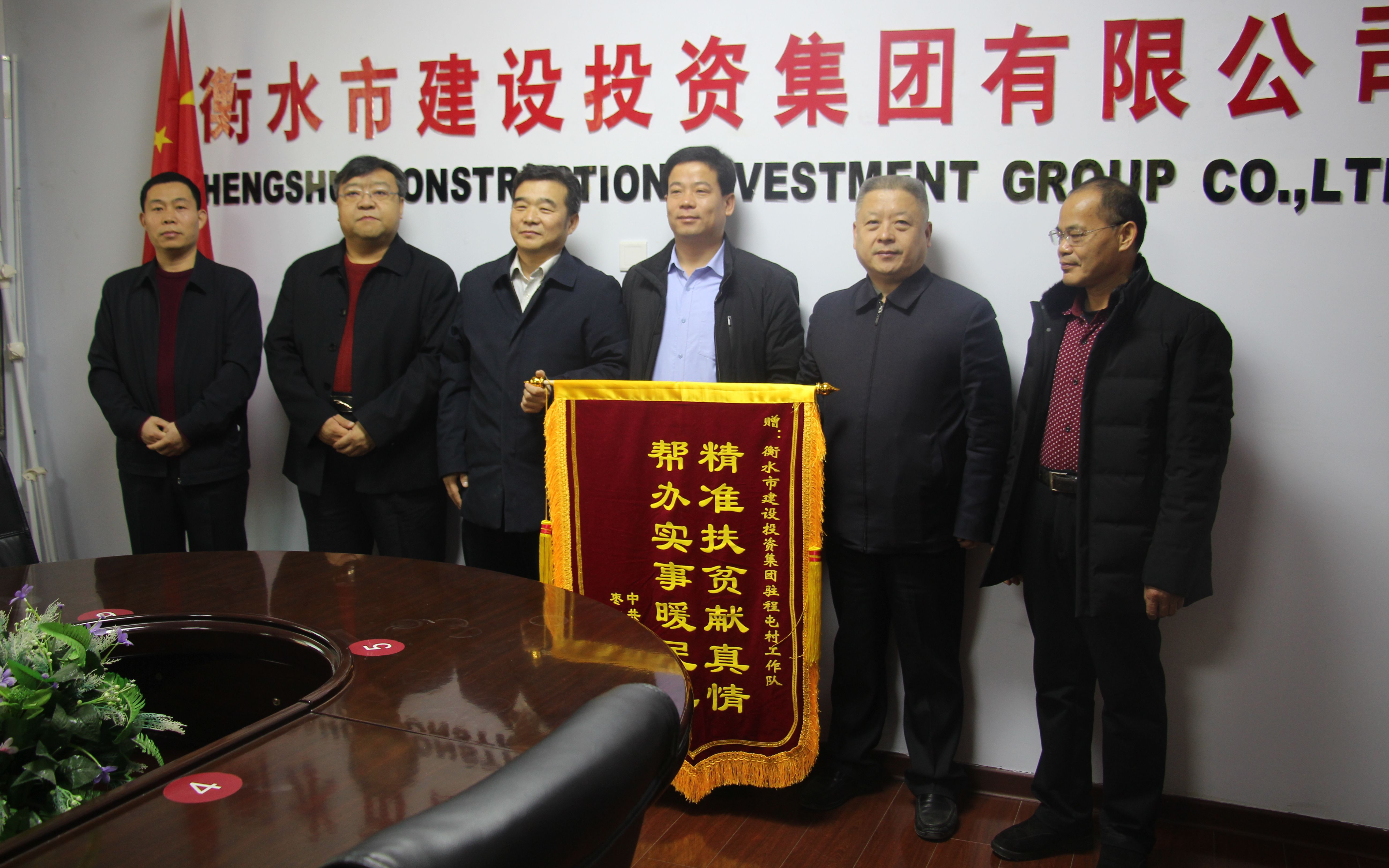 1月20日一大早,枣强县枣强镇康马区区长屈其政带领程屯村干部来到衡水市建设投资集团有限公司,送上锦旗和该村全体村民联合签名的感谢信,表达对建投集团及驻村工作队的诚挚谢意。