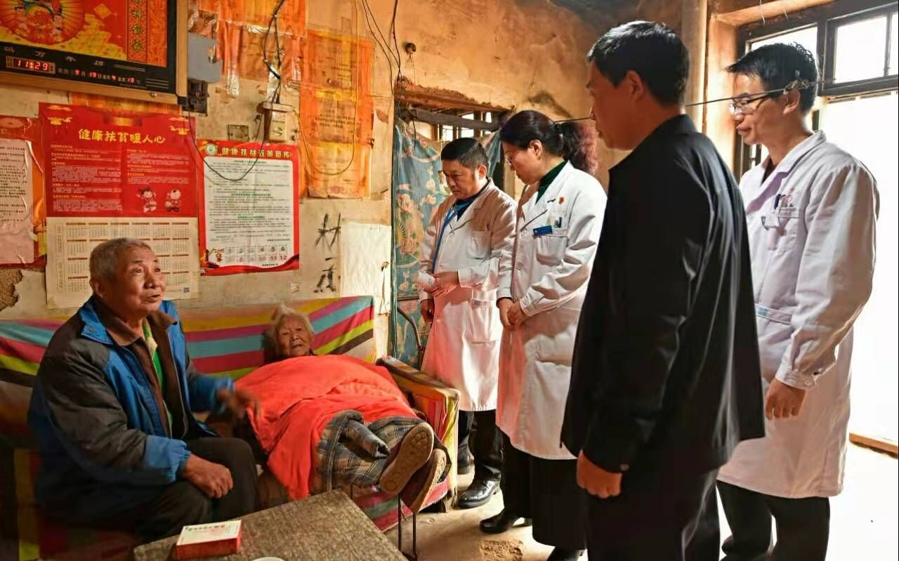 驻村工作队队长武瑞生(右二)带领市五院爱心医疗队到贫困户家中义诊。