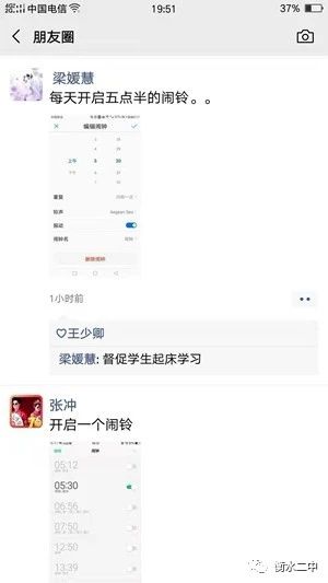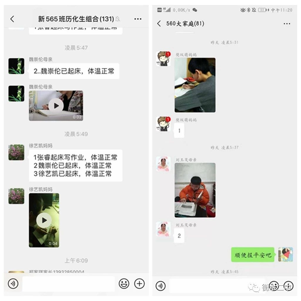 学习永远只有进行时,没有完成时。为了让学生保持良好的生活习惯,保持健康的体魄,以对抗疫情,衡水二中老师纷纷开启了“云叫醒服务”模式。老师们通过线上提醒的方式,提示学生从早晨5:30开始,测量体温、汇报健康情况,同时按照学校的作息时间刻苦学习。
