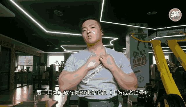 有针对性地拉伸颈部前侧肌肉,解决颈部前侧肌肉张力过大。手稍微用力放在你的锁骨(上胸)位置(固定筋膜),用力抬头(目前可达到的最大程度),感受颈部前侧肌肉拉伸感。