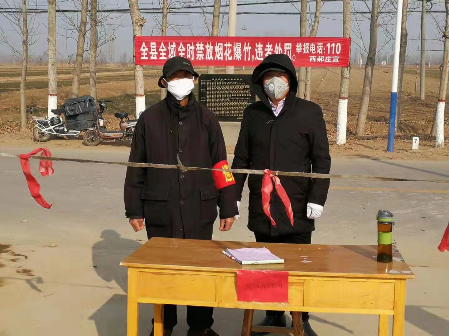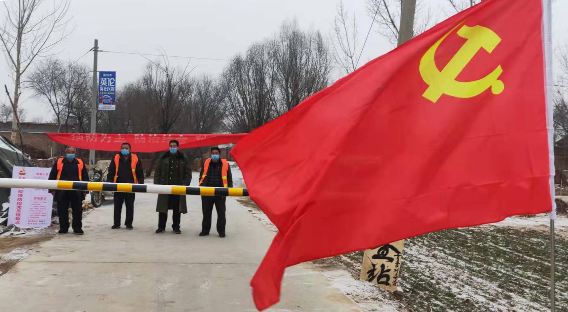 按照“只留一个出入口”的原则,1月24日上午,该镇各村3个小时内设置了检查岗,封堵其他进出村路口,完成了疫情防控的“第一道防线”。各村党员成为防控工作的“逆行者”,纷纷写下“请战书”主动要求加入村口值班队伍。于是以党员干部为骨干,身着统一反光马甲,挂有统一袖标的党员志愿者成为全镇的靓丽“风景线”。他们24小时严防死守,监测村口进出群众体温并登记,严禁外来车辆入村。为及时沟通反馈,全镇73个村和各企业实行统计数字和信息日报制度,每天在微信群不定时汇报情况。同时,该镇将购买的6000个口罩、200个温度计、1000斤消毒液全部发放到各村,并悬挂160幅条幅、摆放30个隔离牌。此外,该镇还在几个定点村的党群活动中心门前准备了废弃一次性口罩投放桶,积极稳妥推进疫情防控工作。