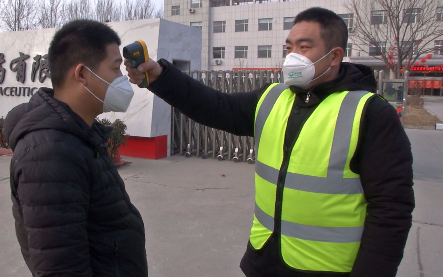 4日下午,在冀州区东部新区的河北明仁堂药业有限公司,企业党支部成员徐永民正在给进厂车辆消毒杀菌、为进厂人员测量体温,“把好进门‘第一关’,让企业几百名职工安心工作,这是我在‘请战书’上给广大企业员工许下的郑重承诺,也是作为一名企业党组织成员的光荣使命!”