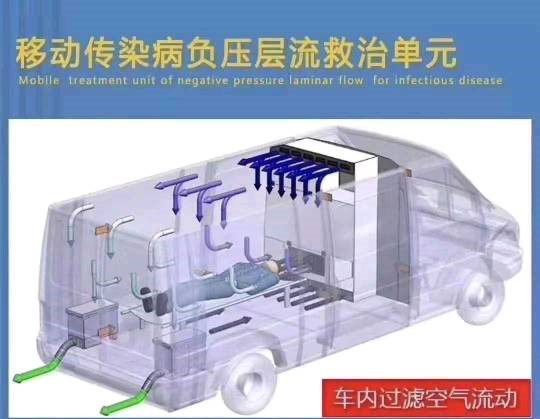 这种车最大的特点是“负压”,利用技术手段,使车内气压低于外界大气压,所以空气在自由流动时只能由车外流向车内,而且负压还能将车内的空气进行无害化处理后排出,避免更多的人感染,在救治和转运传染病等特殊疾病时可以最大限度地减少医务人员交叉感染的机率。