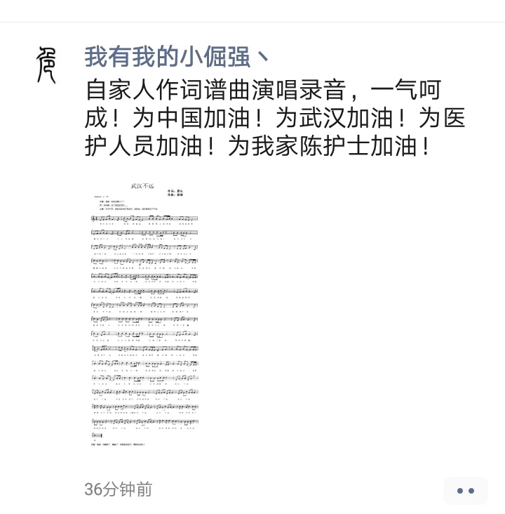 陈晶的表哥邢东,是衡水市一名优秀的文学撰稿人,新型冠状病毒感染的肺炎疫情暴发后,看到全社会都积极行动起来,尤其是医疗人员奔赴湖北支援武汉,社会各界纷纷捐款捐物抗击疫情的情形,邢东很受触动,便提笔迅速创作了一篇题为《武汉不远》的歌词。“以前虽然写了不少文章,但是从没有写过歌词。”邢东说,写完歌词后,便想让上大学的儿子邢楷为它谱上曲,但几天来,邢楷总说欠缺一点灵感,始终没有完成。
