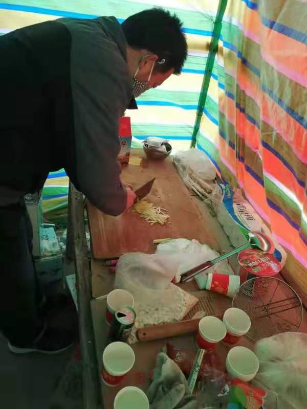 今年43岁的牛保余有着一手做菜的好手艺,在村南开了十来年的小饭馆,生意一直很红火。疫情发生以来,他积极响应镇里号召,主动关闭了自己终日人来人往的小店,减少了人员聚集的可能。当看到村口值守的党员由于条件有限,只能就着冷风啃干粮,他二话不说就在值班卡点旁边搭起了一个简易厨房,让奋战一线的党员们吃上了热腾腾的饭菜。“大伙儿有啥想吃的就跟我说,我给咱们做。等疫情过去了,我请大伙儿吃大餐!”牛保余总是说,特殊时期,党员们温暖着大家的心,他就负责暖着大伙儿的胃。