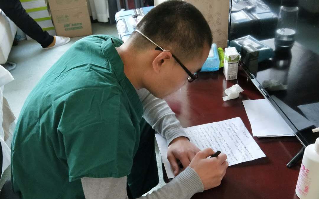 经过紧张的培训,我终于和战友们一起战斗在武汉洪山体育馆方舱医院抗击肺炎疫情的第一线。今天,我们十五名支援湖北医疗队成员在带队队长张宏亮的带领下,一起郑重写下了入党申请书。我们就是要像身边的共产党员那样勇敢去战斗,守护人民群众的生命健康!
