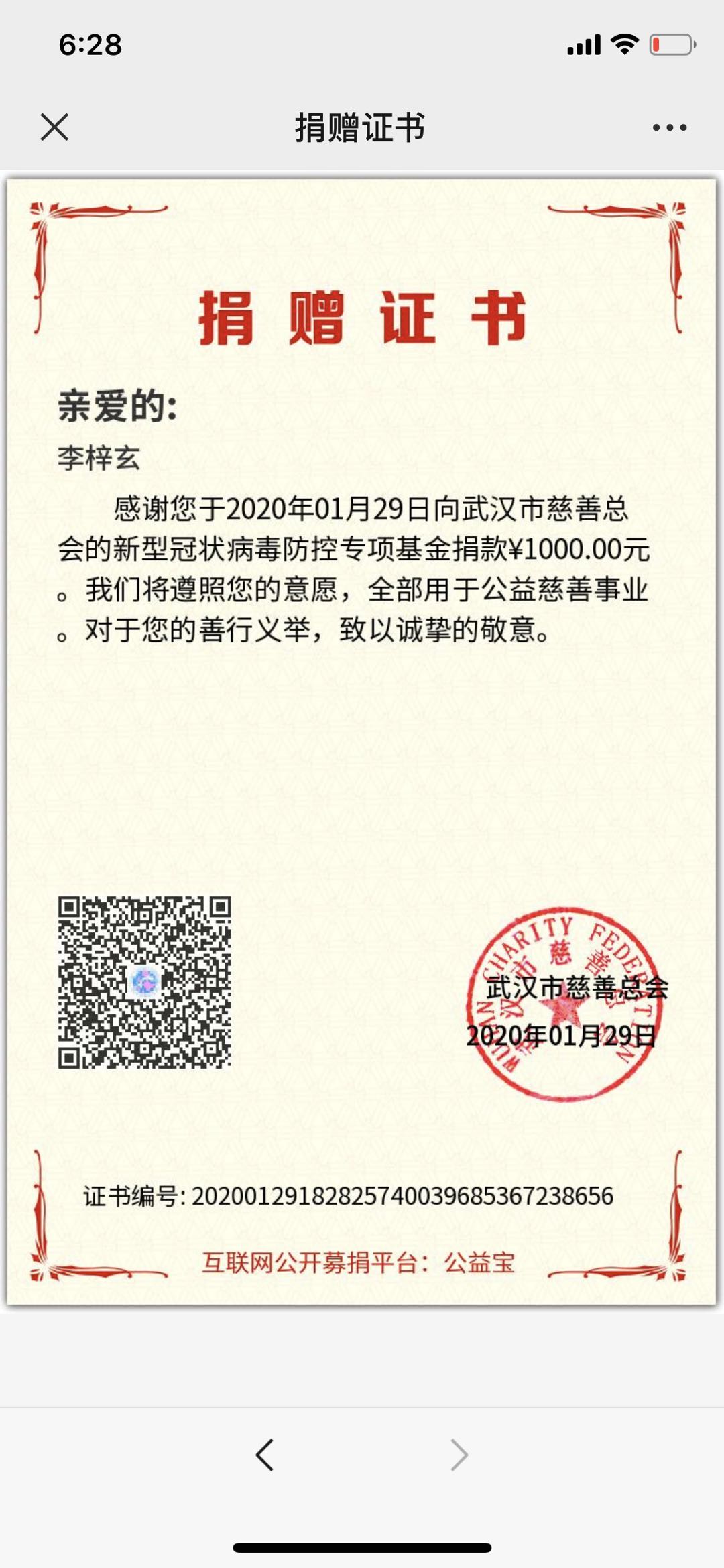 据李梓玄的妈妈贺纯纯介绍,这已经是孩子的第三次捐赠了,疫情刚开始的时候就把1000元压岁钱捐给了武汉市慈善总会。后来家里的长辈又给了孩子1000元压岁钱,她又捐给了青少年基金会。