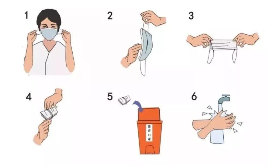 1.健康人群:使用过的口罩风险较低,按以下步骤取下后丢弃即可↓