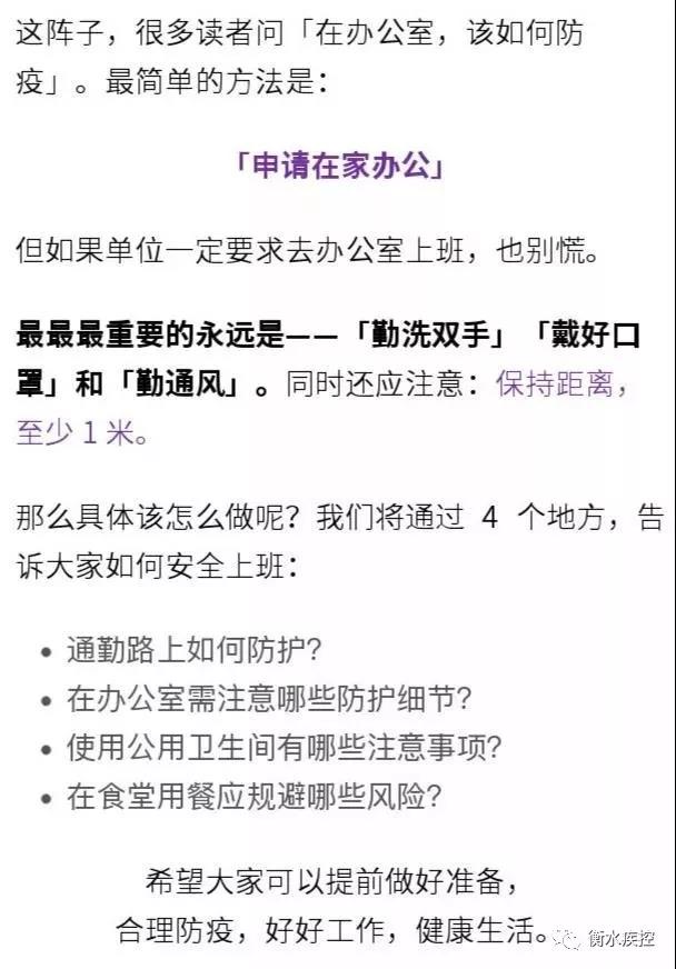 来源:衡水疾控 2 +1 微博 微信 我要评论 发布 赵青 2227天前 很实用 更多评论请在客户端查看> 相关推荐 景县疾控中心联合多部门共筑听力健康防线 泉香 2天前 筑牢校园安全防线,河北交通执法上好“开学第一课” 关注 2天前 阜城中燃:开展工商业用户安检 筑牢生产经营安全防线 衡水速览 2天前 长图|防患未“燃”!春季野外防火安全课,一起学习 关注 4天前 社区“摆摊”讲防骗 武邑居民家门口学到“3·15”维权硬知识 衡水速览 4天前 近视防控 计量在行动 ——衡水市市场监督管理局高新区分局开展“3·15”近视防控系列活动 富美新区 5天前 老报今读丨从防风固沙到满城繁花 听雪 6天前 热门 一天 三天 一周 1 衡水市公开招募婚姻调解员 2 贯彻落实全国两会精神|河北广大干部群众认真学习贯彻习近平总书记重要讲话和全国两会精神 3 衡水市城管局:整治非机动车停放秩序 让文明“入位”助通行 4 【“十五五”开局看衡水】数智领航“丝”路新程——安平丝网产业蝶变再升级 5 一烙一烫承古韵 千葫百态绘匠心——探访深州市葫芦烙画技艺 6 【“十五五”开局看衡水】千年冀州焕新彩 文旅融合向未来 7 景县开展“爱心爸妈”赋能培训 护航孤困儿童成长之路 8 衡满意!我来说②丨给钱、给技术、还给销路!谁对武邑芽苗菜这么“宠爱”? 9 【凝心聚力 真抓实干 奋力实现“十五五”良好开局】全面布局未来产业 激活高质量发展新动能 10 枣庄汉画像石精品拓片展走进衡水市博物馆 1 衡水湖畔:山桃花盛放 吸引市民踏春赏景 2 全国两会中的“衡水声音”获央媒省媒持续关注 3 热血青年赴征程 不负韶华卫家国 衡水桃城区举行2026年上半年新兵入伍欢送仪式 4 衡水推出不动产“带封过户”改革 5 衡水八极拳传人李晓阳:以拳砺初心 以身传武魂 6 净化网络餐饮安全环境 衡水市569家餐饮外卖被下线 7 衡水:2026年度中小学教育机器人创客竞赛开赛 8 家门口来了北京专家! 衡水五院牵手首都医科大学三博脑科医院共建医联体 9 饶阳县机械化作业助力红薯产业跑出 振兴“加速度” 10 抢抓农时忙春管 科技赋能保丰产 ——衡水市桃城区春管春种见闻 1 人勤春来早 春管正当时——衡水市扎实推进春季农业生产纪实 2 【新闻发布】每人每月最高800元 衡水向中度以上失能老年人发放养老服务消费补贴 3 一方小田园 “种”出新生活——衡水滨湖新区开心农场春管见闻 4 衡水市将于4月初开展残疾人运动员选拔工作 5 衡水发布2月份食品安全“红黑榜” 194家生产经营主体上榜 6 【衡视频】知名胃肠镜专家坐诊衡水市五院 三种人群需要做胃肠镜检查 7 衡水市区宝云公园:修剪养护已完工 静待花开映日红 8 2025年衡水民用水电气三表更换惠及24.5万人 9 当“超级充电宝”装上“智慧大脑”——河北武强鸿布储能电站探访 10 衡水市启动社会救助兜底保障集中核查工作 广告 广告 广告 24小时 1 总书记的人民情怀丨“干事创业一定要树立正确政绩观” 2 权威发布丨河北省创业担保贷款新政出台 3 “十五五”开局看河北 | 黄骅港综合港区液体化工码头冲刺6月建成 4 政声直达丨河北发布35个“人工智能+”典型案例 5 百姓看联播 | 通勤开挂!北京到雄安“定制快巴”正式开通 6 【高标准高质量推进雄安新区建设现代化城市】2026年雄安低空交通创新技术应用大赛在南京 深圳举办推介会 7 打开雄安的九种方式(三)丨楼上楼下,都是创新搭子 8 探访雄安新区“机器人学校” 9 大力优化营商环境 加快高质量发展 | 河北:信用微改革推动政务服务大提升 10 总书记“公开课”|政声人去后 民意闲谈中