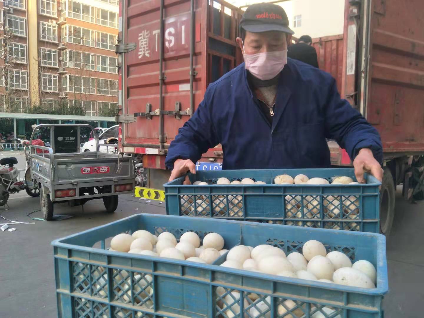 2月9日下午,在衡水市区的怡然城吉美超市,武邑县龙店镇何家村的农民何永标卸下450斤鸭蛋后,驾驶着货车又匆匆赶往另一个送货地点。当天,把3600斤鸭蛋运至衡水后,他的眉头不再紧锁,疲惫的脸上也有了多日不见的笑容。对何永标来说,这是一个最难熬的春节。因为突发的疫情,原本的销路受阻,导致15000斤鸭蛋滞销积压;但这又是一个最温暖的春节,衡水市市场监管局主动伸出援手,帮何永标解决了鸭蛋的销路问题。