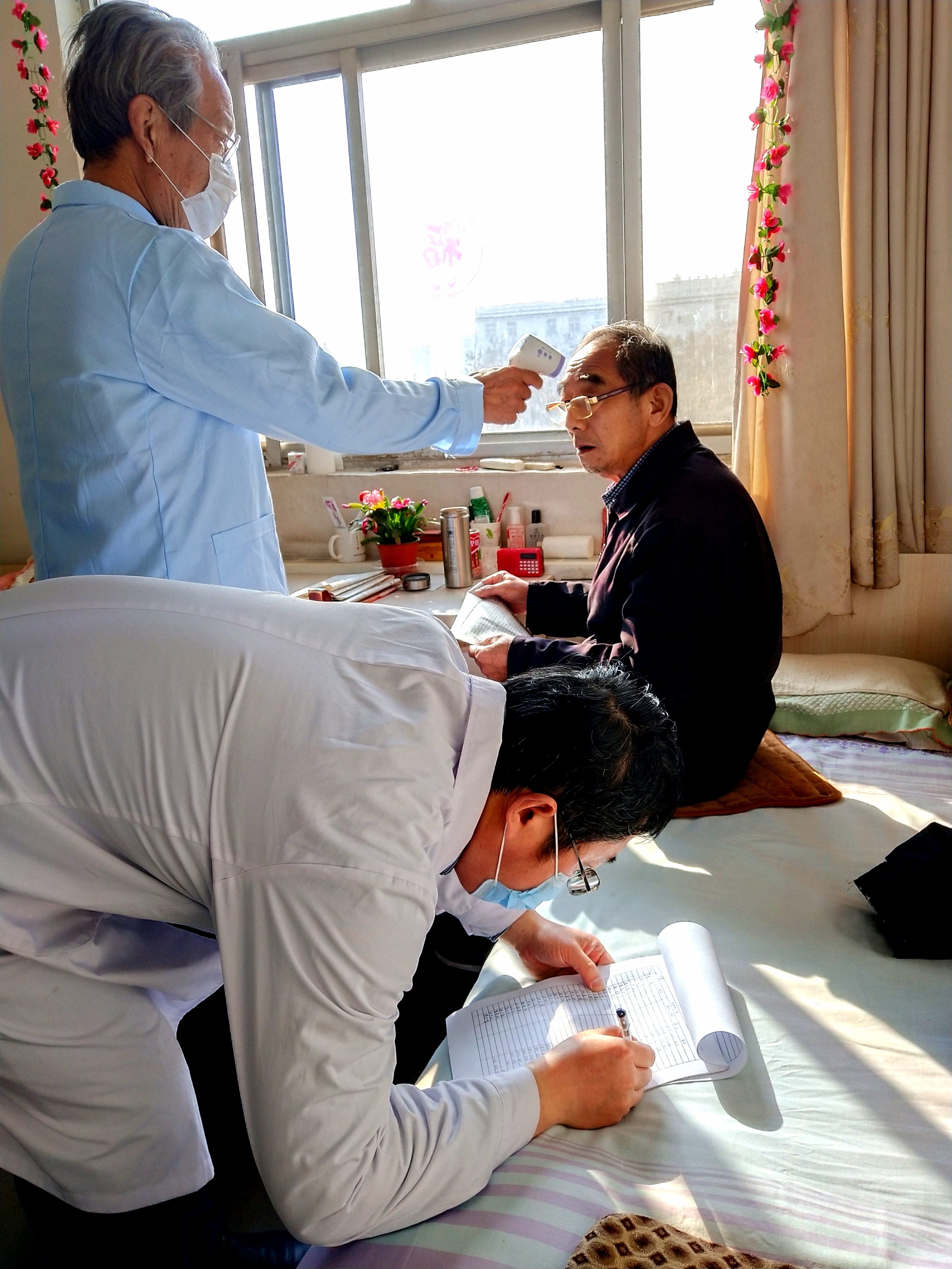 “阿姨,您今天体温36.5℃,体温正常。”“王大爷,您出来一定要带好口罩,注意个人卫生。”“刘阿姨,陈大爷,您们聊天尽量离远点,最好在两米以上。”……这是故城县郑口镇大杏基村养老中心加强养老院疫情防控管理的一个缩影。自疫情发生后,故城县大杏基村的养老中心,按照上级要求,实行全封闭式管理,禁止任何家属入院探访和老人擅自外出。早中晚三次为老人测量体温,每天对养老院院内、各个活动室、老人宿舍、食堂,细到门把手、水龙头等进行两次全方位消毒,阻隔病毒传播空间。“疫情期间,院里给我们老人进行新型冠状病毒感染的肺炎防控知识培训,让我们观看关于疫情的新闻。”今年64岁的孙立斌说,老人出屋都要求必须带上口罩,对于外来人员,更是谢绝入内。