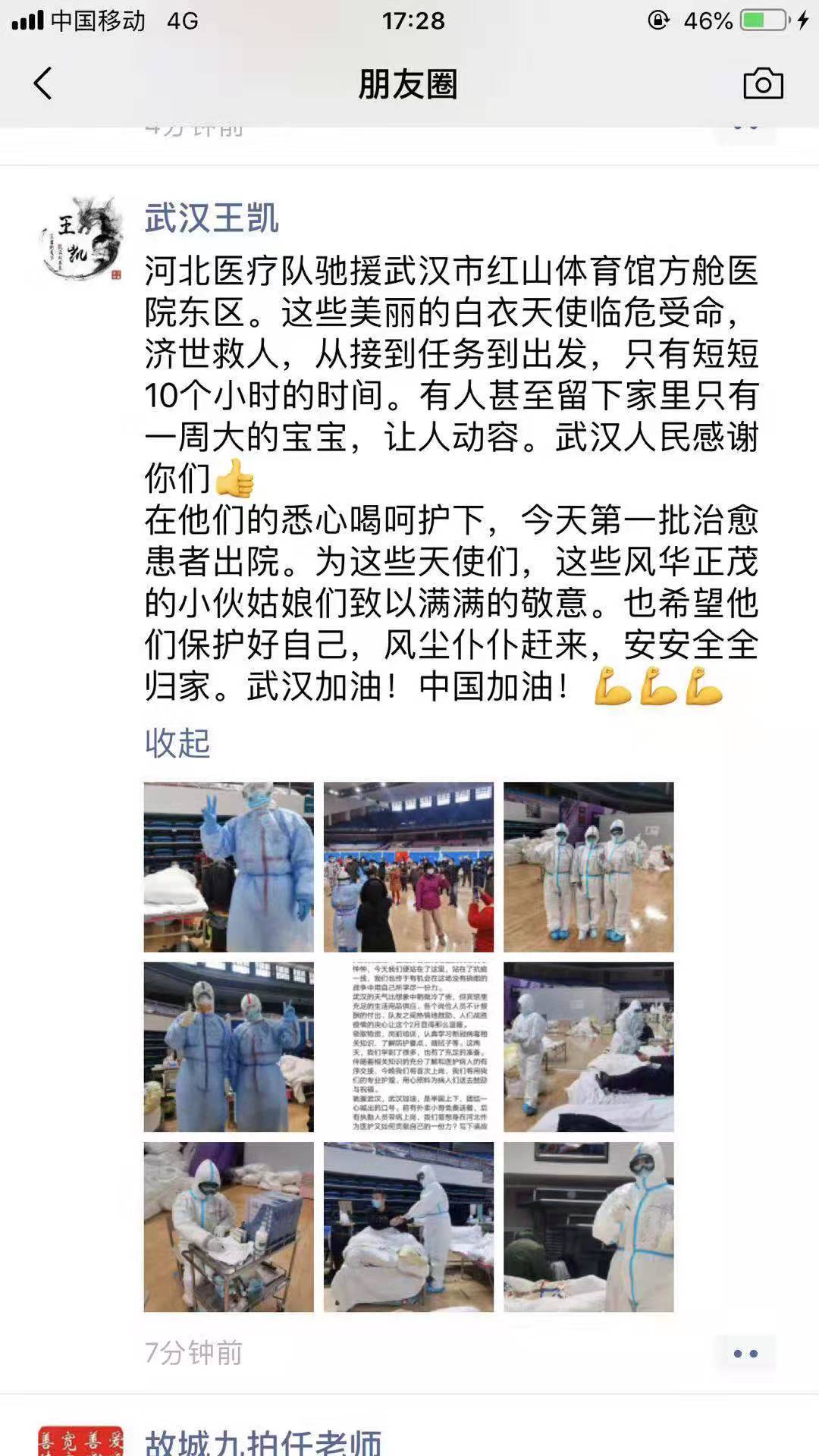 王凯发朋友圈感谢千里迢迢驰援武汉的医护人员