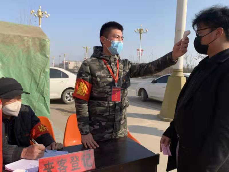 1月23号,返乡探亲的他主动把自己的情况反映给了村里,毫无隐瞒。听到村里需要党员值守劝返点,他积极报名,“我是1月8号回来的,14天居家隔离时间已经过了,作为一名党员,作为一名军人,保障群众的生命健康和身体安全,我义不容辞。”从踏上防疫一线的第一天起,吴黄帅就展现了勇挑重担、冲锋在前的军人本色。他每天认真排查过往行人和车辆、为出入村民监测体温、不厌其烦的为每一个村民讲解疾控知识。无论北风呼啸,无论严寒刺骨,他总是站的最挺拔的那一个。