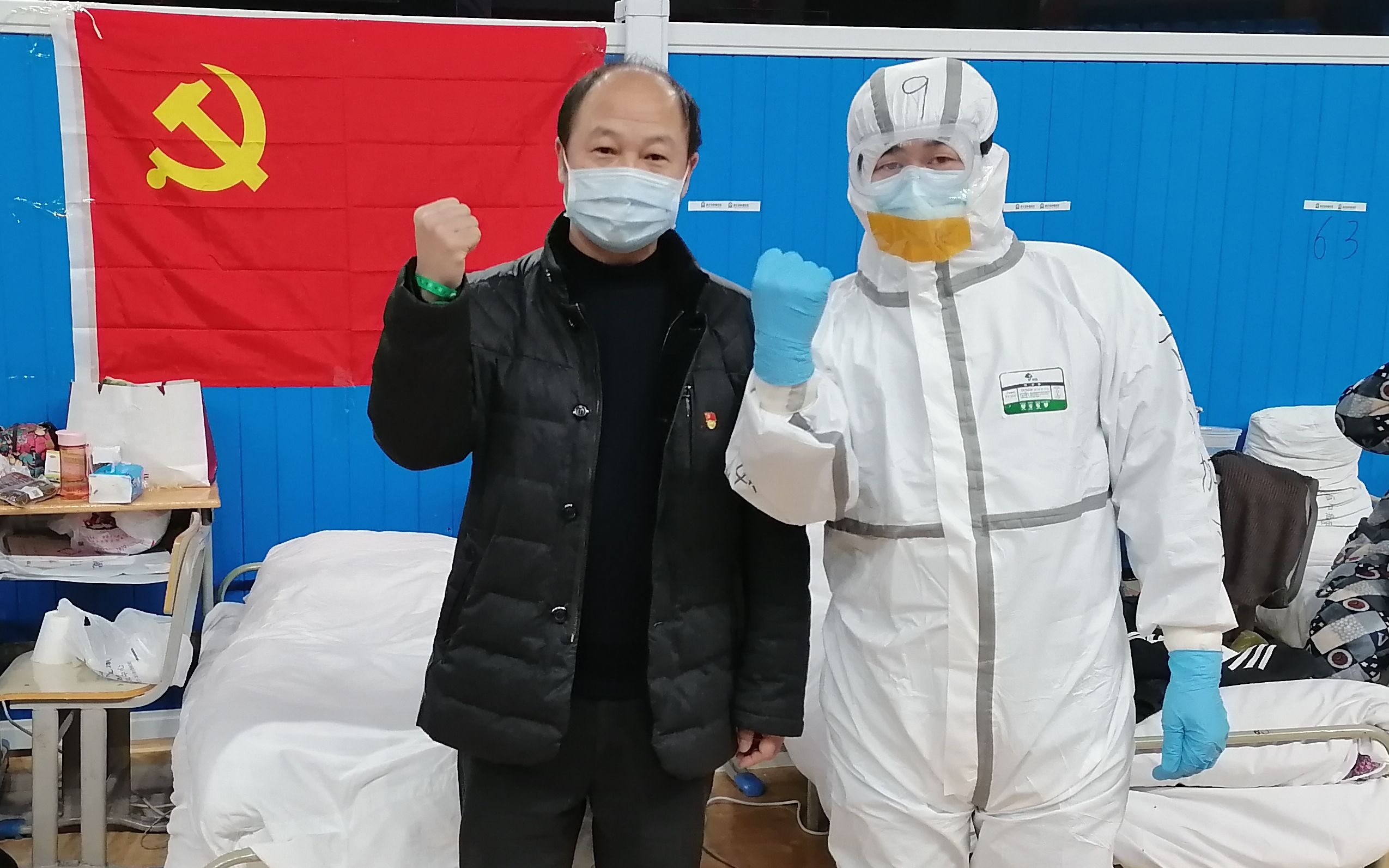 今天病区墙上多了一面党旗,是66床的患者张兵和几个病友挂上去的,他说自己虽然是患者,但更是一名党员,他相信在党和政府的领导下,一定会取得这场战“疫”的胜利。看到这面旗帜,我感觉自己浑身的血液在沸腾,身体所有的不适一扫而光,组员们的精气神也顿时受到鼓舞。前几天我们刚刚写好入党申请书,尽管我不是共产党员,但能够在这面旗帜下宣誓是我们这支医疗队队员们共同的心愿。